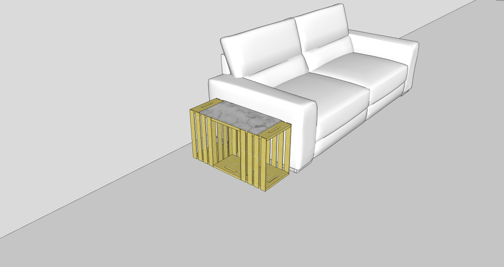 Want some added appeal? We added some standard marble tiles on top of some crates for both style and function. The rough side on the back of the tile in contact with the wood keeps the tiles generally in place without fastening.