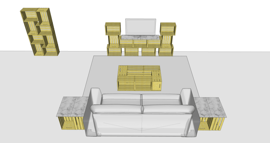 You can find wooden crates all over – from some big box retailers to old barns to the internet. They come in various shapes, sizes, and colors. We were inspired seeing the many DIY pieces online that people have created, but we noticed that most pieces were singular objects that were permanent fixtures in a space. We thought “could we use wooden crates for the entirety of our living room furniture without limiting it’s arrangement?”