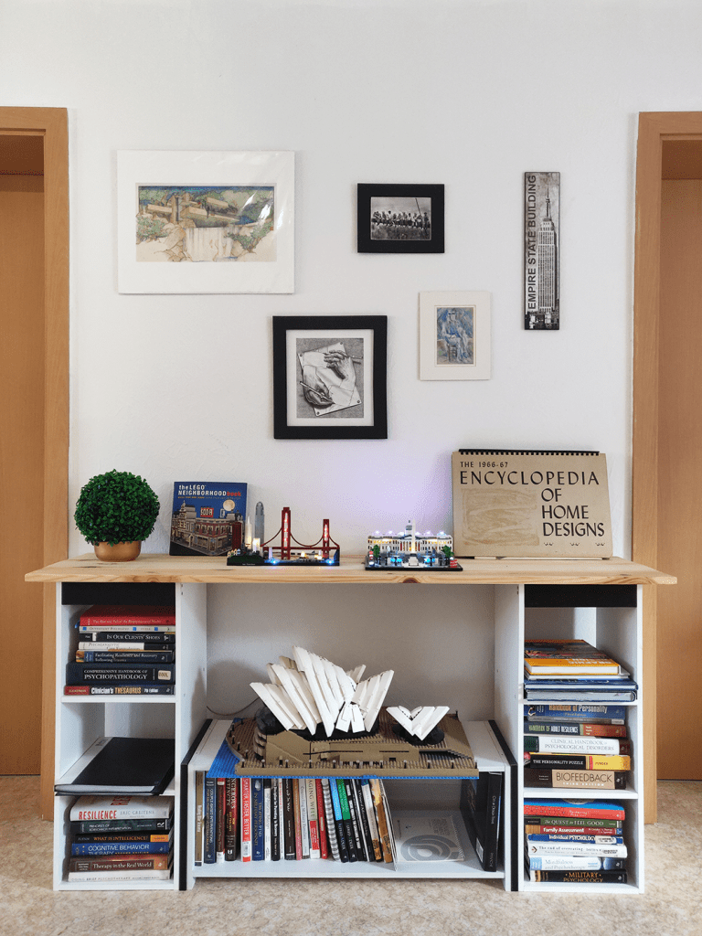How a broken bed frame, misfit shelves, and a plank of wood turned into a furniture piece